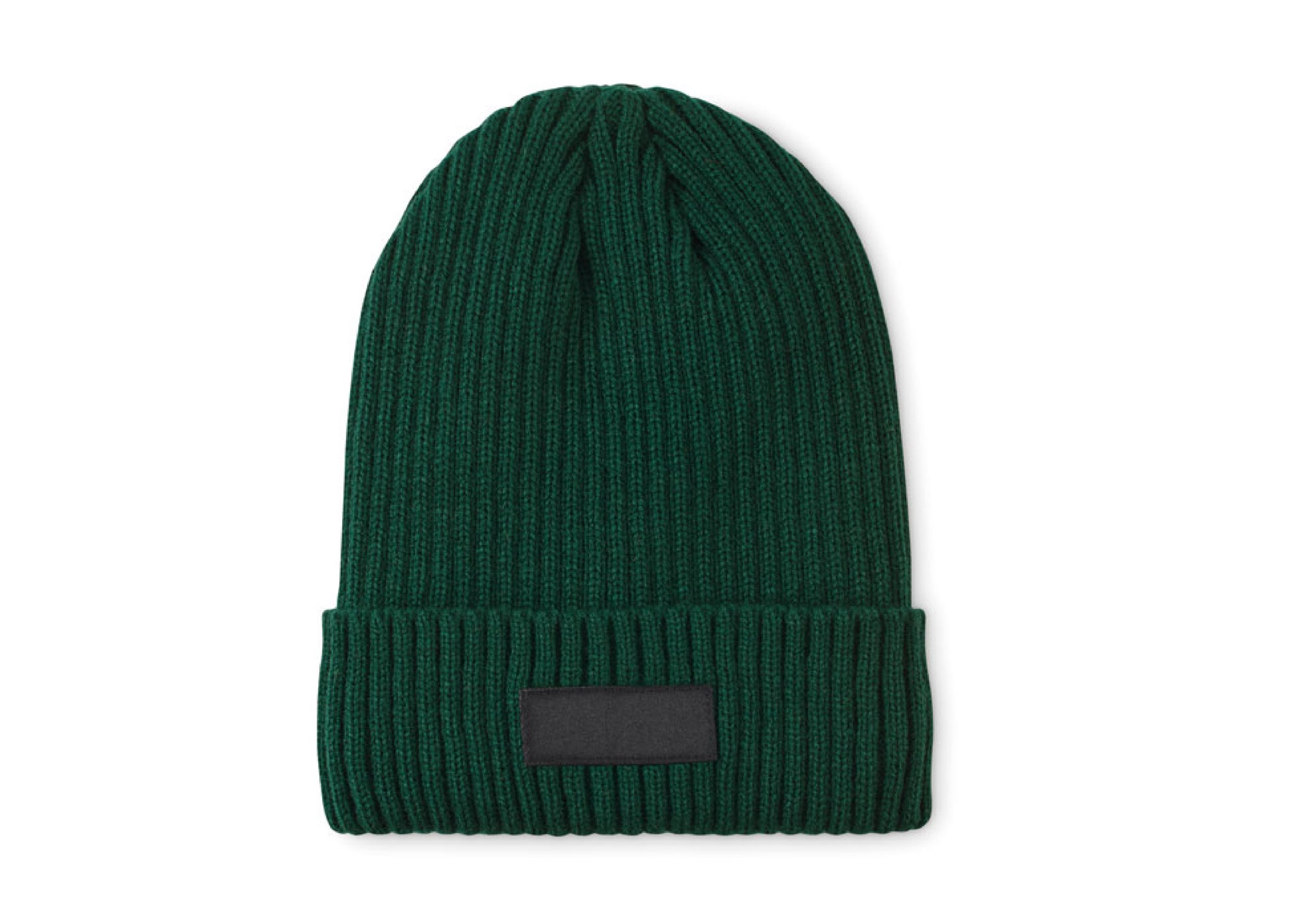 Bonnet tricoté unisexe en acrylique à l'extérieur et en polyester à l'intérieur, revers. Taille unique. Marquage sur l'étiquette en sérigraphie en 1 couleur sur 1 position.