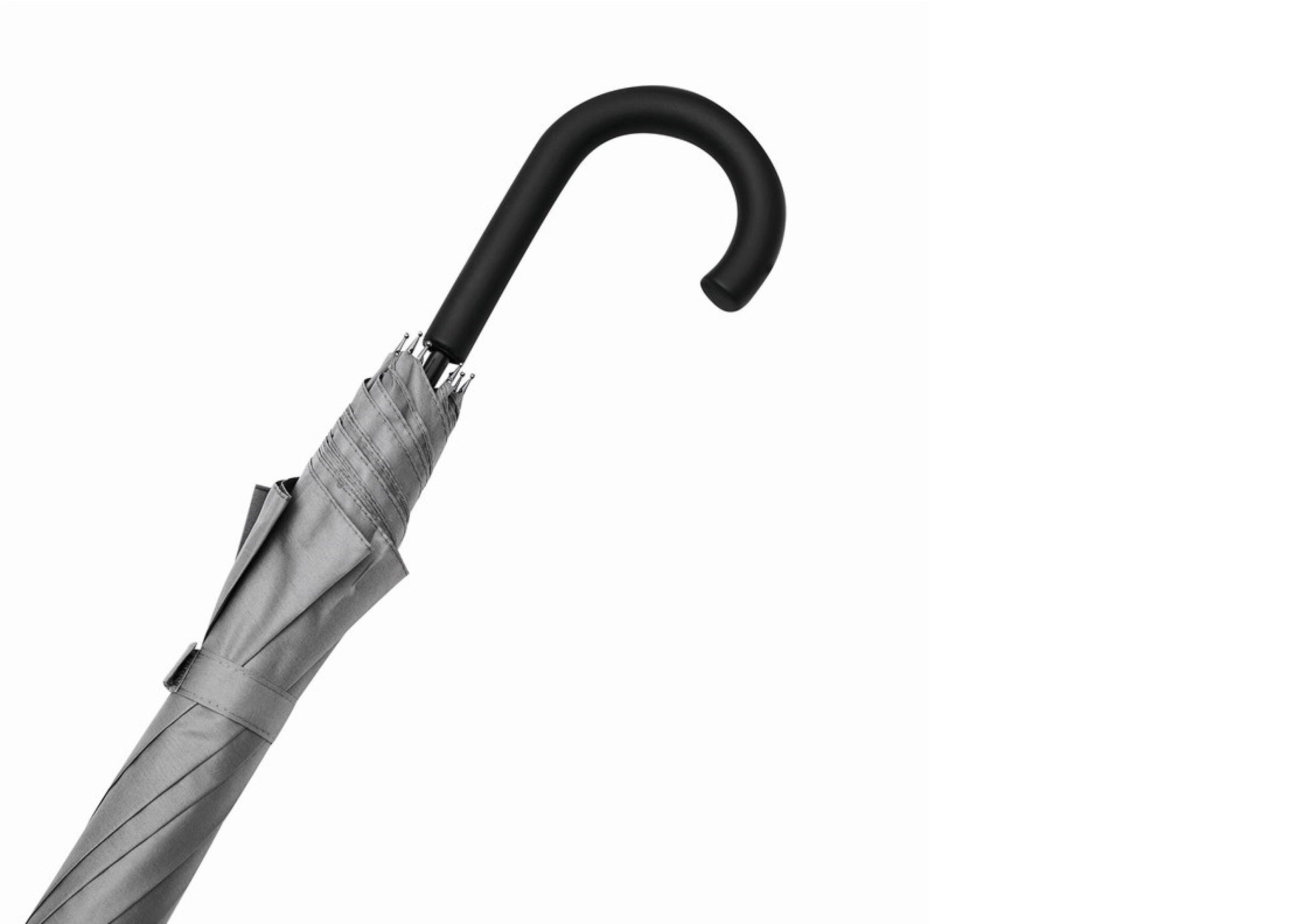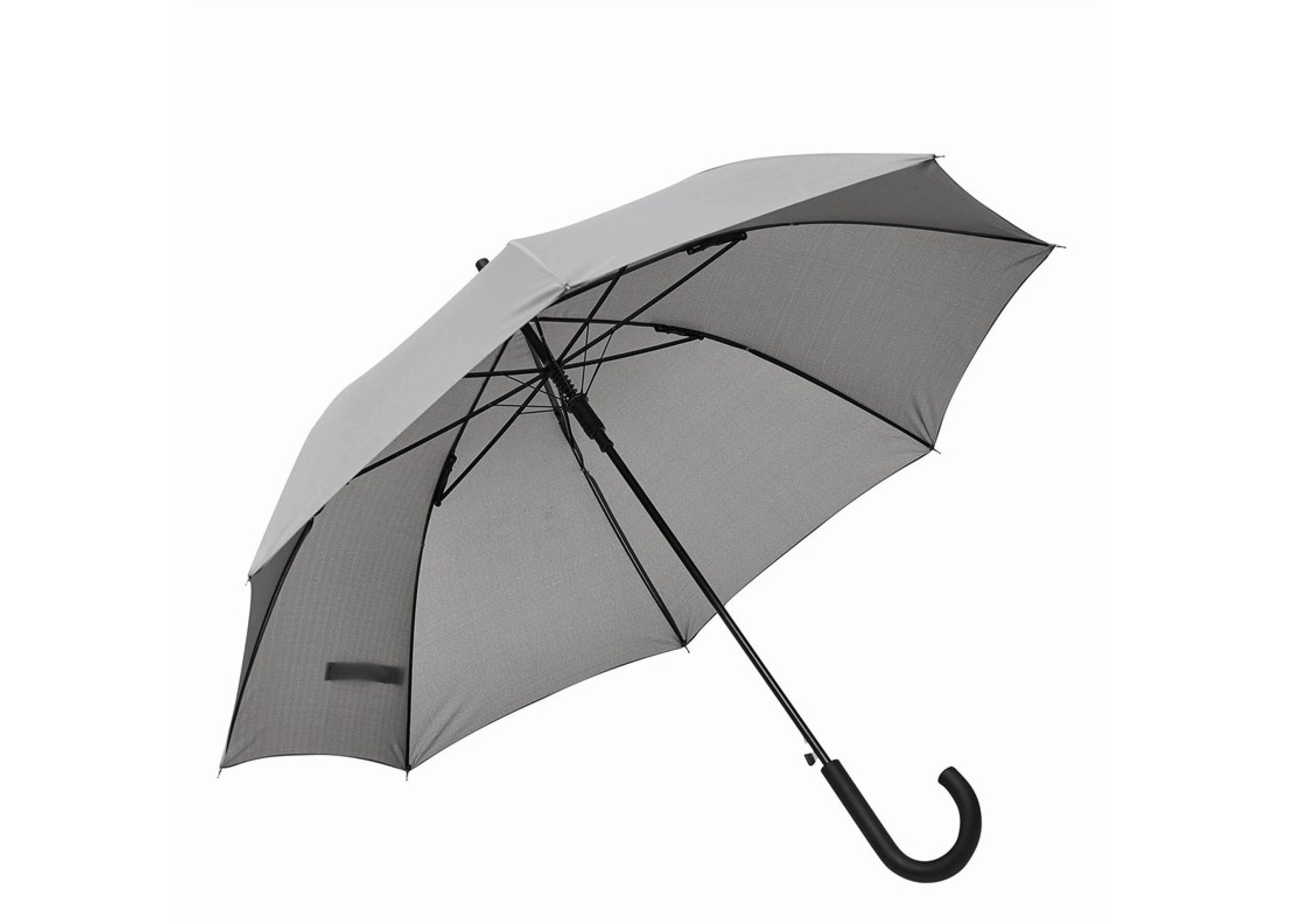 Parapluie automatique en fibre de verre résistant au vent , embouts en métal et baleines en fibre de verre, poignée en gomme, toile polyester, fermeture velcro.
