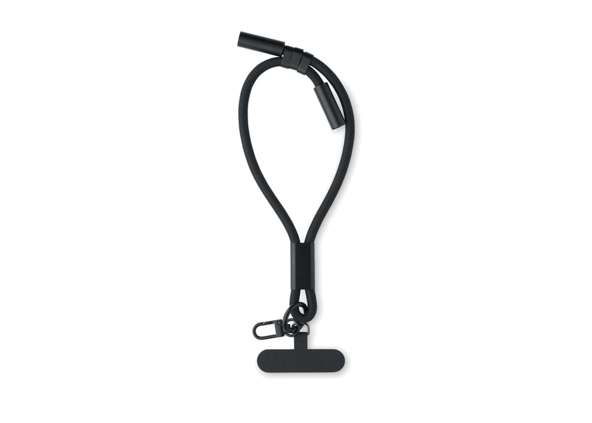 Cordon avec câble de charge et de transfert de données de 60W de type-C en RPET avec porte-cordon de téléphone et porte-clés. Marquage en tampographie en 1 couleur sur 1 position.