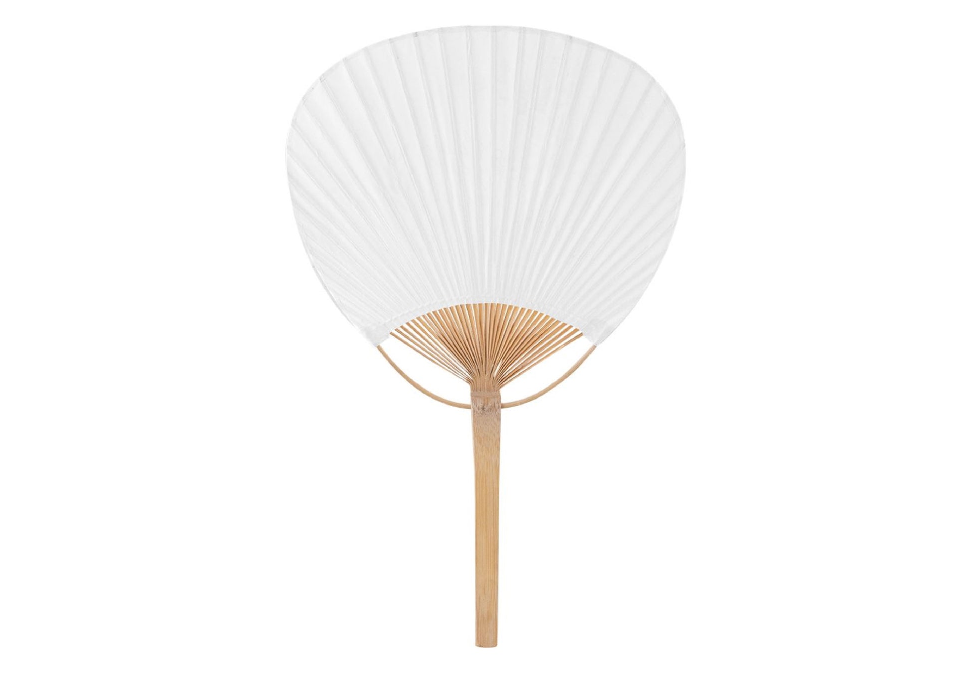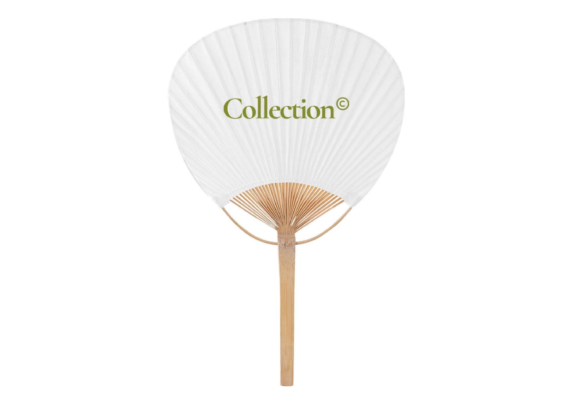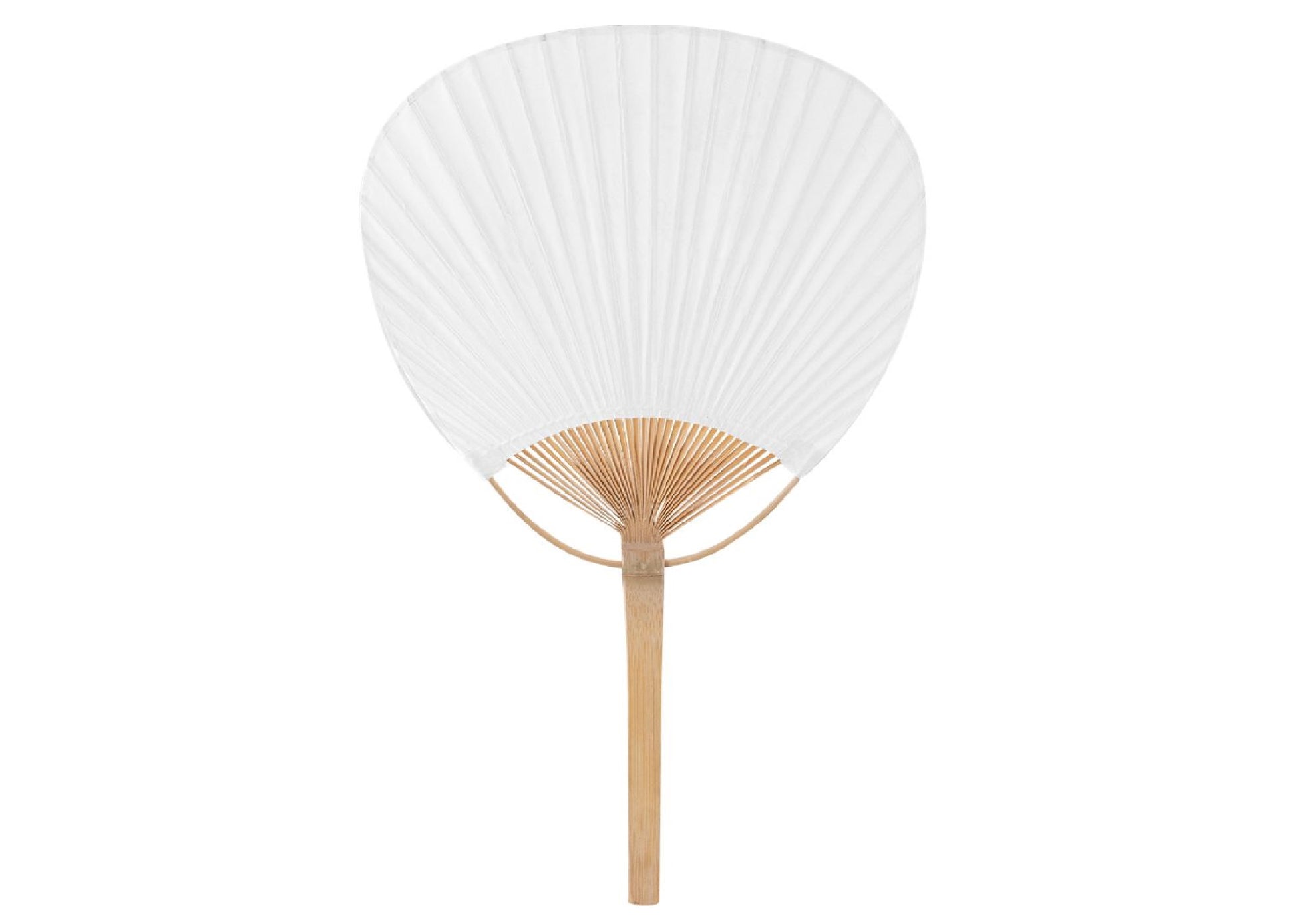 Éventail en bois avec feuille de polyester. Cet éventail comporte 14 baleines + 2 embouts.