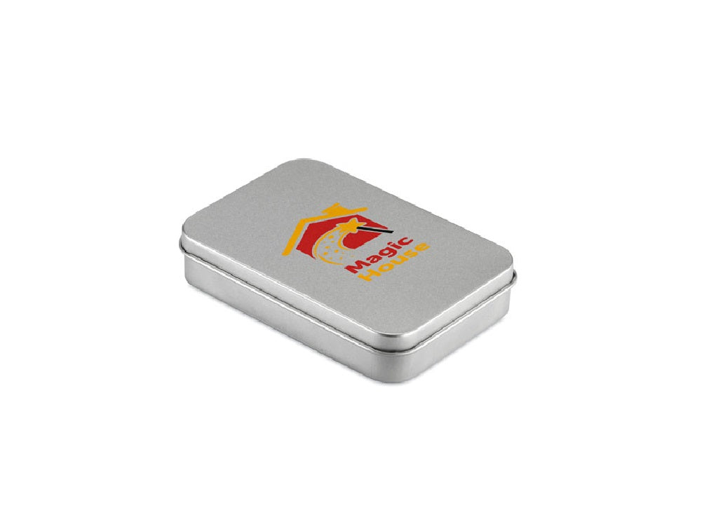 Jeu de cartes classique dans sa boite en étain d'argent, à personnaliser. Marquage sur 1 face en Tampographie 1 couleur. Devis sur demande.