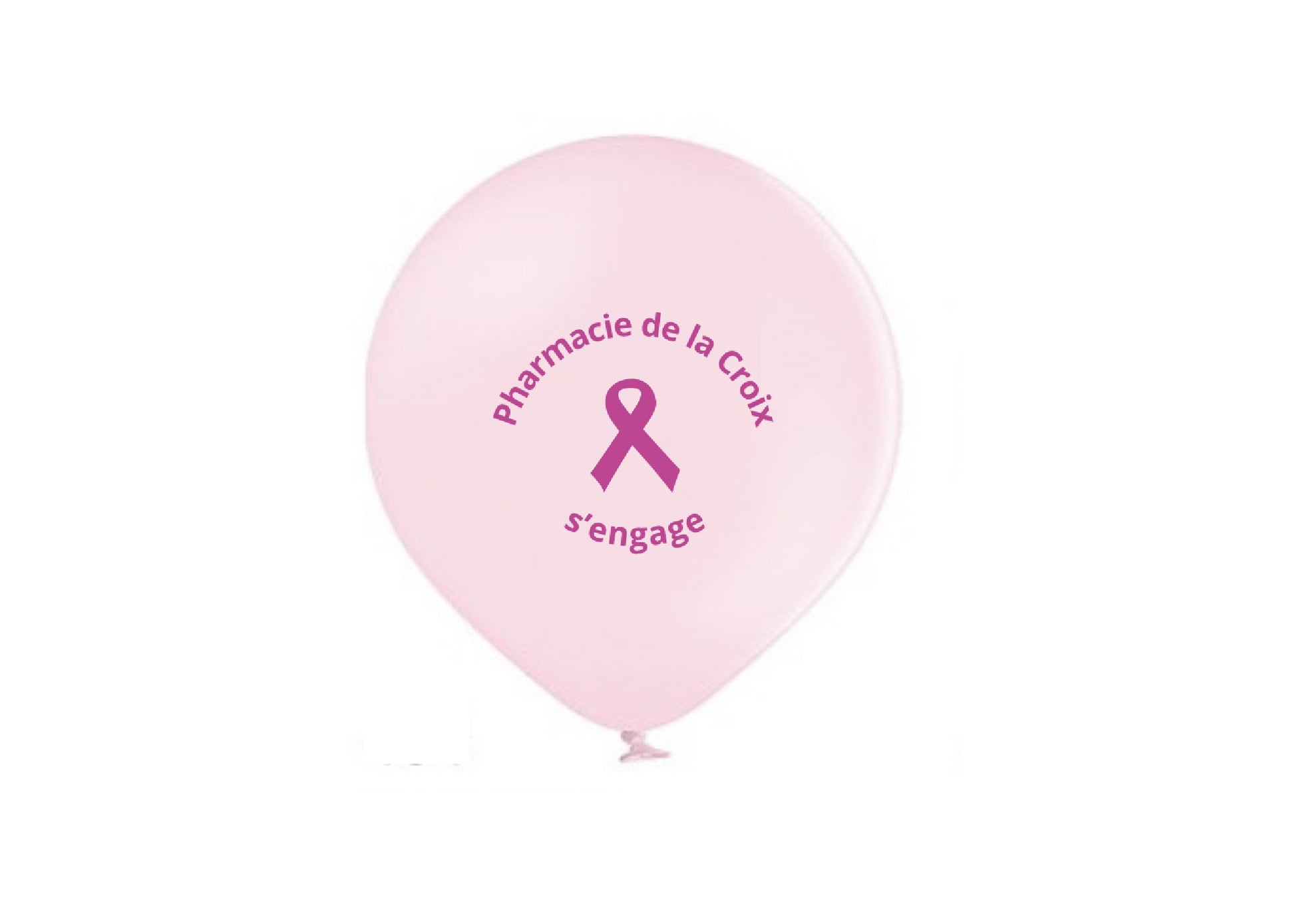Ballons 100% caoutchouc naturel, biodégradable, duo pack coloris rose avec votre marque personnalisé en 1 couleur sur 1 face (autres coloris sur demande).