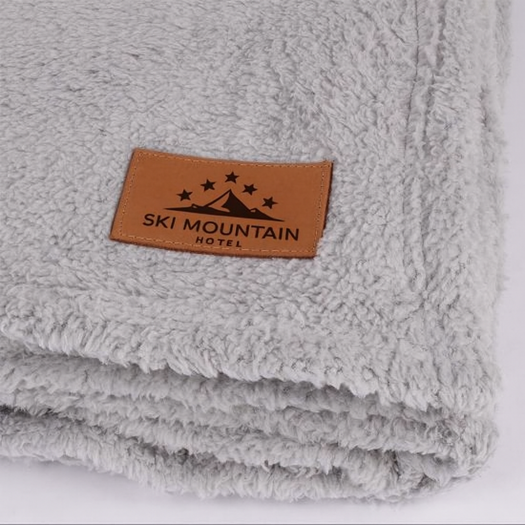 Plaid polaire de 240gr/m², doux au toucher. Deux couleurs sont disponibles : rose pâle et gris clair. Marquage personnalisé en gravure laser sur une étiquette 1 couleur sur 1 position. En option marquage en broderie.