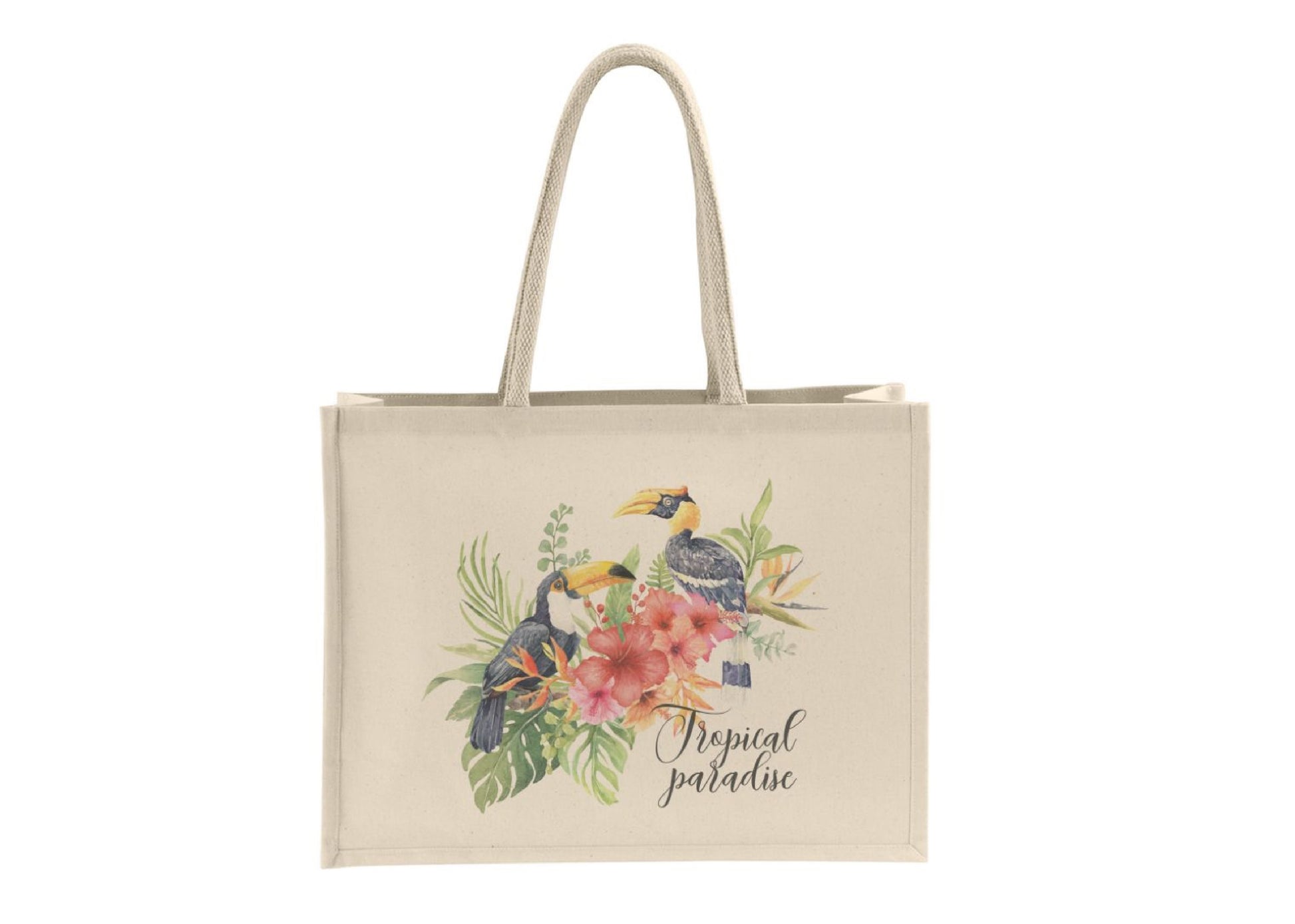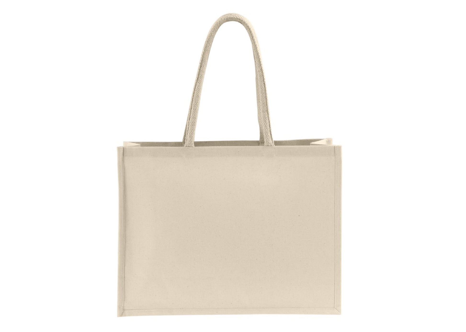 Sac shopping en coton canvas (230gr/m²) avec grandes anses en coton et laminé à l'intérieur. Marquage personnalisé inclus en sérigraphie 1 couleur sur 1 position.
